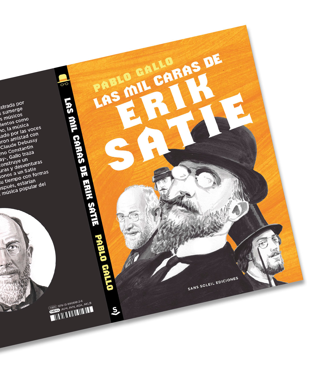 Las mil caras de Erik Satie, escrita e ilustrada por Pablo Gallo, es una biografía que nos sumerge en la vida y obra uno de los primeros músicos de vanguardia, precursor de movimientos como el teatro del absurdo, el minimalismo, la música repetitiva o la música ambient. Guiado por las voces de quienes conocieron y mantuvieron amistad con Satie -desde compositores como Claude Debussy y Maurice Ravel hasta artistas como Constantin Brancusi, Pablo Picasso y Man Ray-, Gallo traza un mapa de rostros con el que construye un relato cronológico de las aventuras y desventuras del músico francés, presentándonos a un Satie poliédrico, que se adelantó a su tiempo con formas compositivas que, décadas después, estarían presentes en gran parte de la música popular del siglo XX.